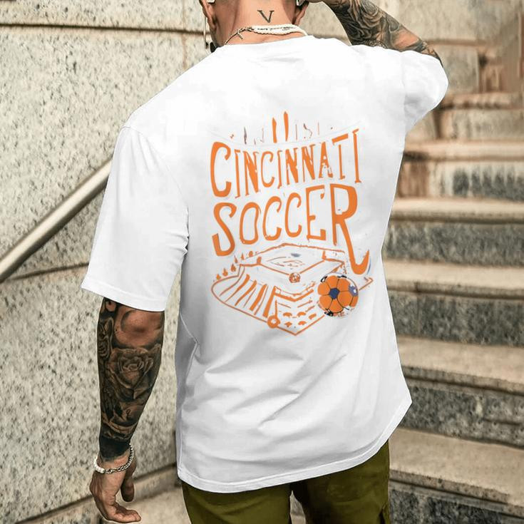 Cincinnati Soccer Cincy Futbol Cool ‘Nati Skyline Men’s T-shirt Back Print