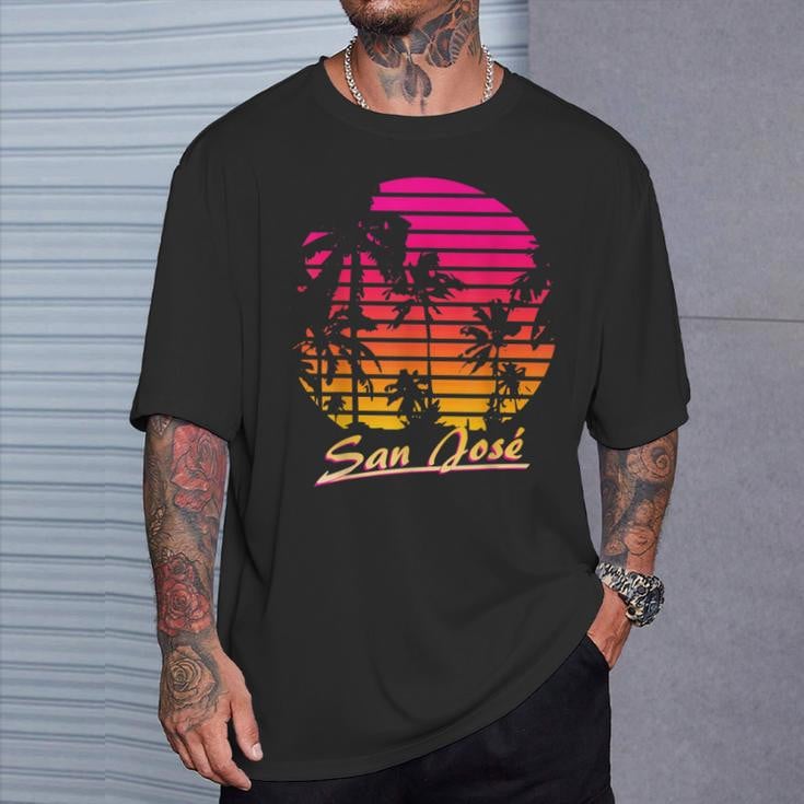 San Jose Cool 80S Palm Trees Summer Sunset T-Shirt
